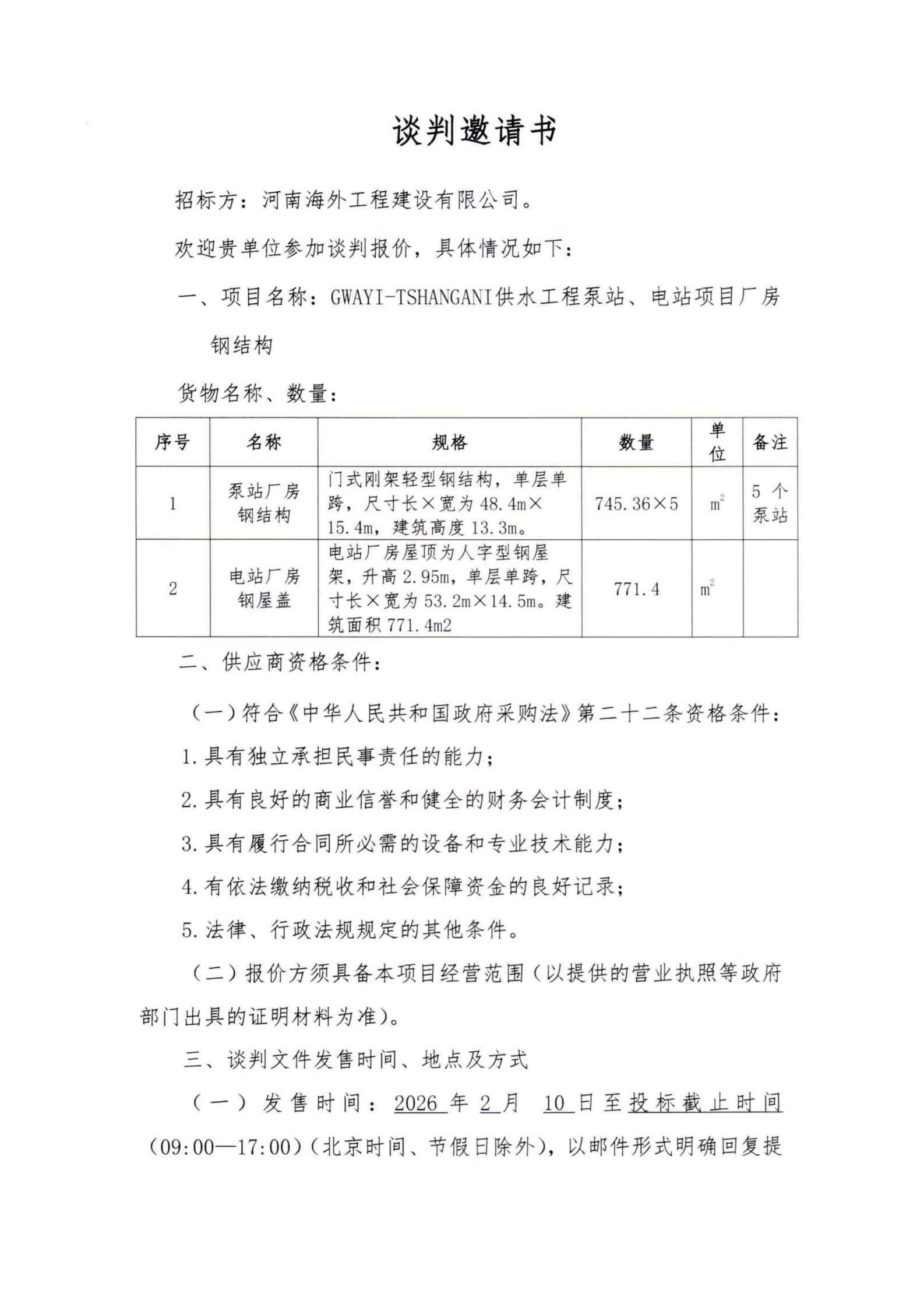 谈判邀请书